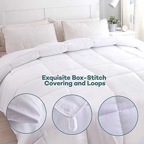 Exquisite Box-Stitch Covering and Loops The comforter doesn't just help with a soundless sleep, it also features an immaculate design that suggests luxury. The outside features stylish box stitching along with piped edges that prevent the inner fiberfill from moving around so you can sleep without disturbance.