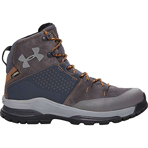 Studio : Under Armour Publisher : Under Armour Binding : Apparel Product Description Waterproof suede leather upper with laser detailing. GORE-TEX® construction is 100% waterproof but remains incredibly breathable. Welded synthetic overlay increases protection support. Anti-microbial Ortholite® sockliner with memory foam top layer that molds to your foot. Internal shank Poron® heel crash pad deliver unrivaled protection cushioning. Durable, rubberized printed mudguard. Ultra-light EVA midsole along with PU heel forefoot cushioning. TPU rubber toecap for trail protection. Full length fiberglass underfoot plate provides lightweight support. High abrasion rugged rubber lug outsole. Height: 7". Weight: 21.5 oz.. Imported. 0