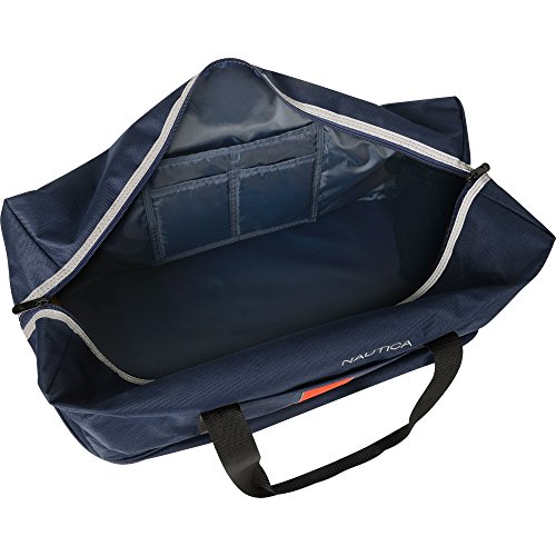 -. Feature : High density twill polyester body fabric / Fully lined interior / Exterior slip pocket for easy access storage / Velcro closure on carry handles / 18x21.5x10.5