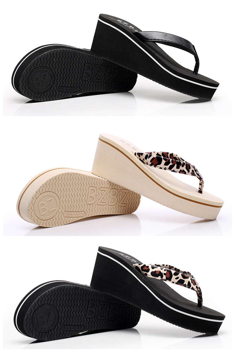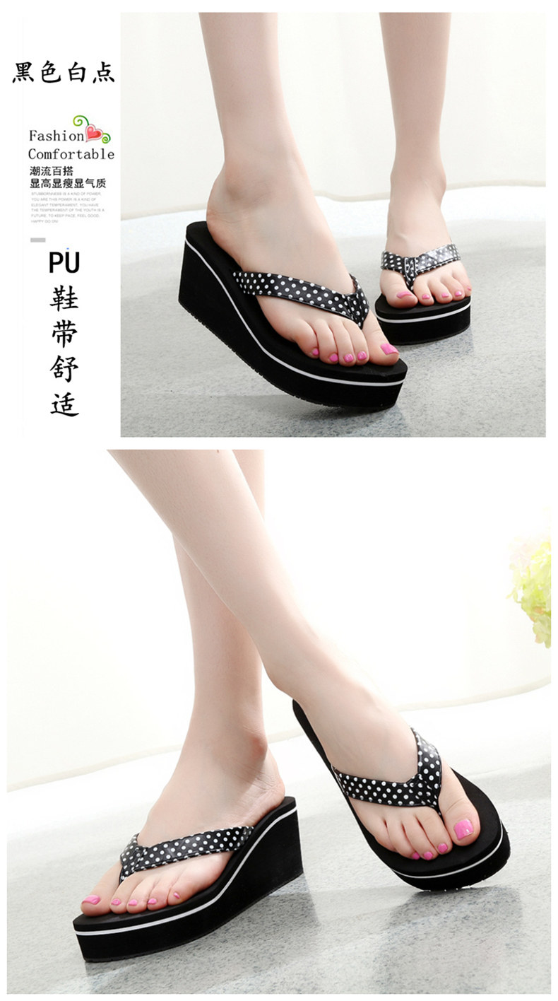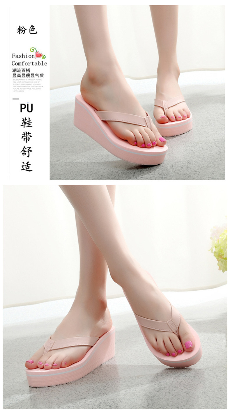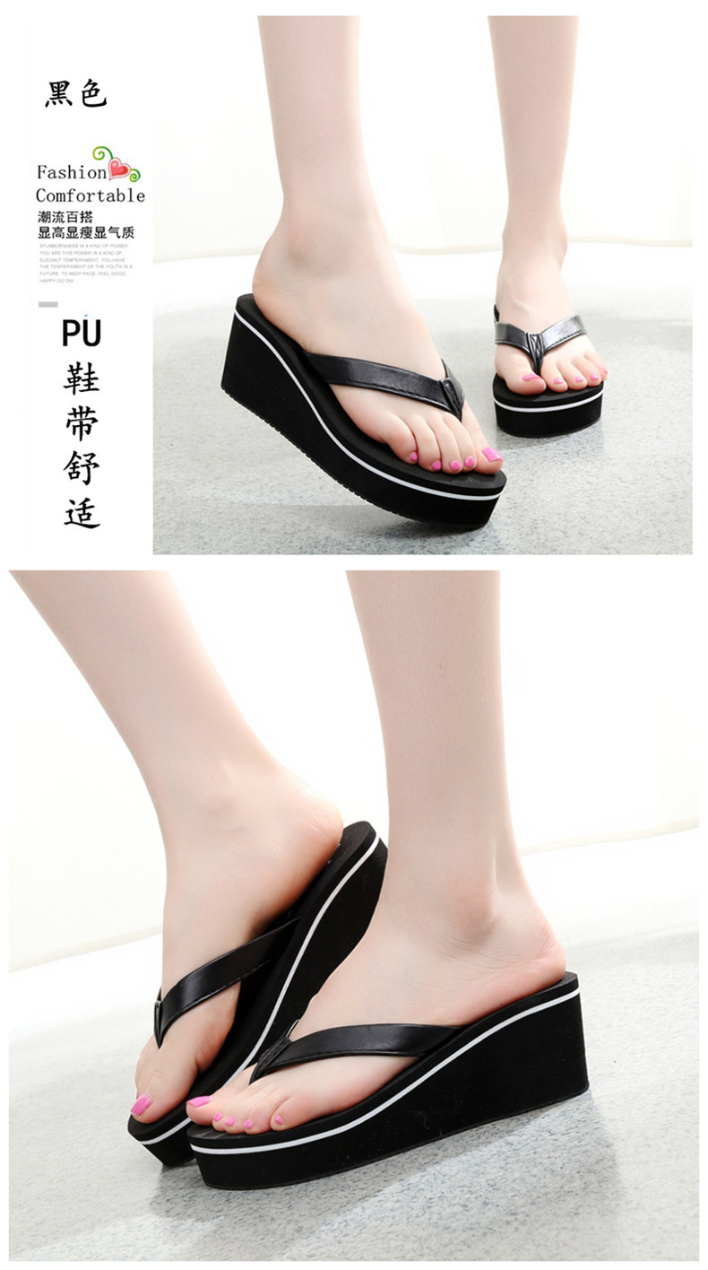 外穿简约PU坡跟厚底人字拖防滑夹脚凉拖鞋女夏韩版休闲沙滩鞋