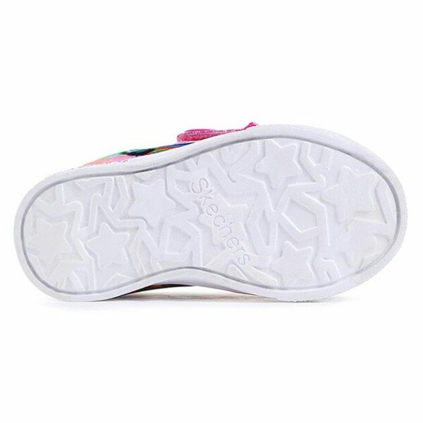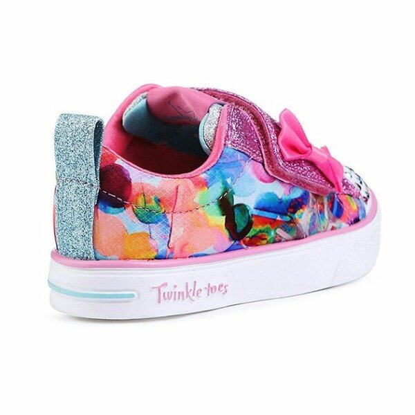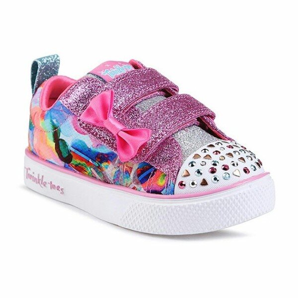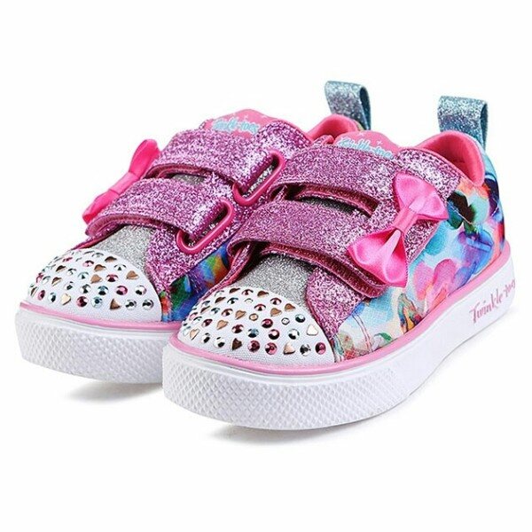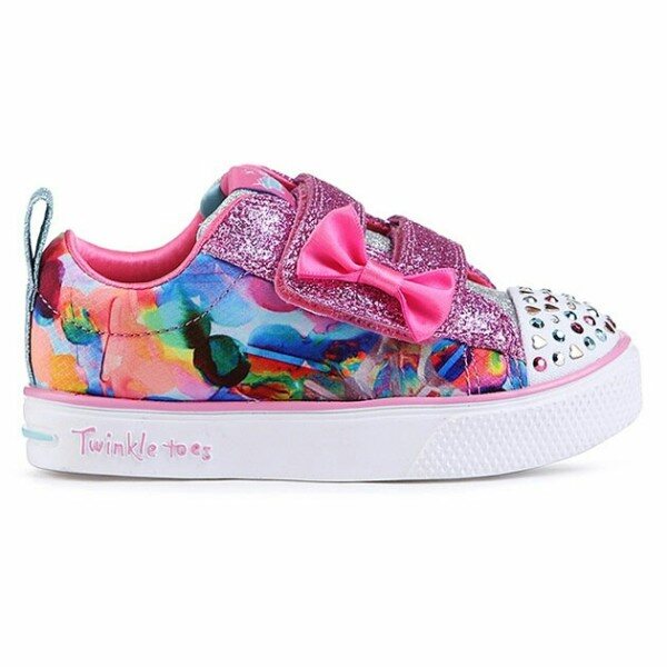 스케쳐스 아동의 대표 라이트 슈즈, 트윙클토 제품입니다. 17FW 시즌부터 새롭게 선보였던 트윙클 브리즈 아웃솔로 무게가 가벼워진 EVA 소재의 경량성업그레이트 제품입니다. 유아에게 인기가 많은 D 벨크로와 리본 포인트, 트윙클토 만의 앞코 범퍼에 다양한 컬러의 큐빅 디테일과 아트적인 수채화 프린트포인트의 부드러운 패브릭 갑피 소재, 충격흡수 미드솔과 유연성이 우수한 아웃솔로 우수한 착화감을 제공합니다. (배터리 평균 수명 3개월 / 연속 60시간)