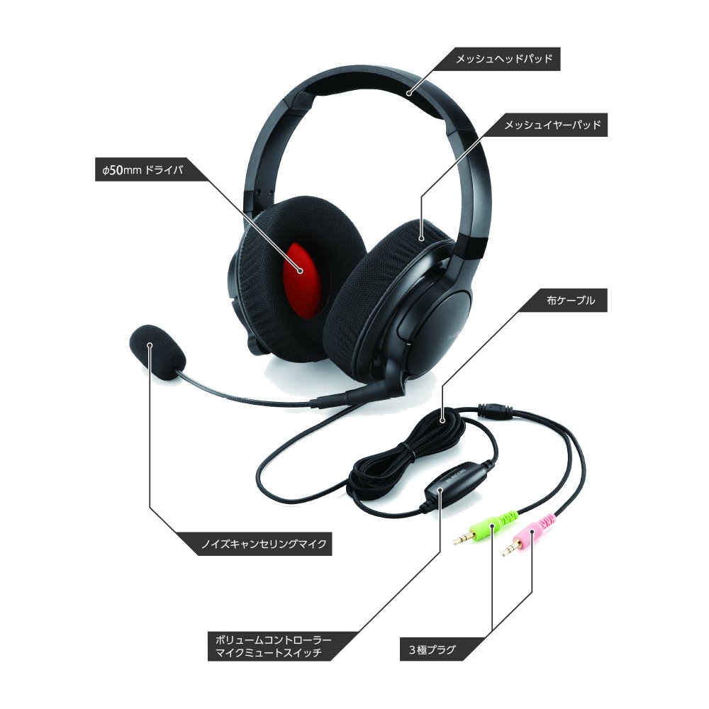 ELECOM Gaming headset 4-pole pin Both ears overhead Mike controller mounted HS-DUX51BK
