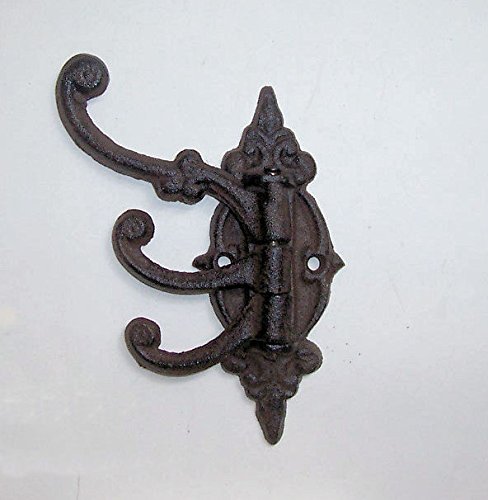 -. Feature : 3 moveable hanger hooks - Swivels 90 degrees - With an antique look - Individually hand casted - A tradition handed down over the centuries - Wall hung indoor or outdoor use / Made of heavy cast iron - Rustic dark bronze finished - Colonial Style - Each hook swing Individually / Swivel hanger measures approximately: 5-1/2 in wide x 5-1/2 in high - Extends 3-3/4 in from the wall - Hangs by two screws - Not included / Use for hanging coat and hat, keys, jewelry, candles, wall decoration and more - New, ever been used / Note: To see cast iron discounted products +++ Search on Amazon: ABC Products Cast Iron