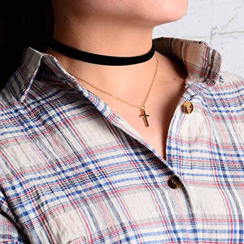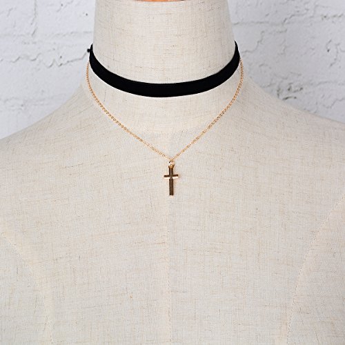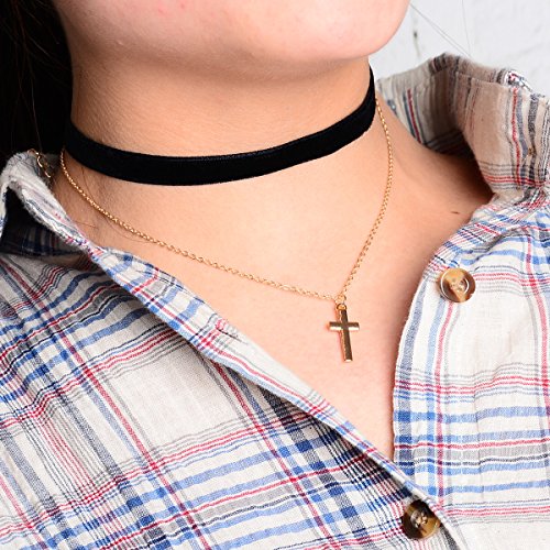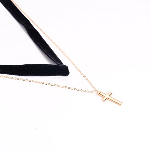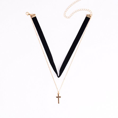 -. Title : Leiothrix Fashion Double-deck Flocked Cloth Necklace with Cross for Women and Girls Apply to Weeding Party Casual