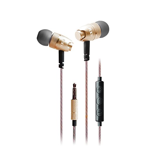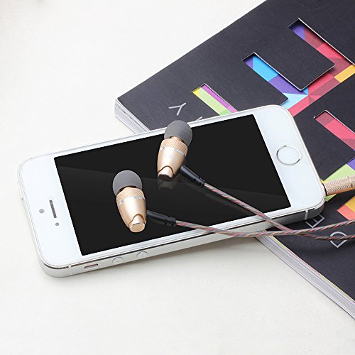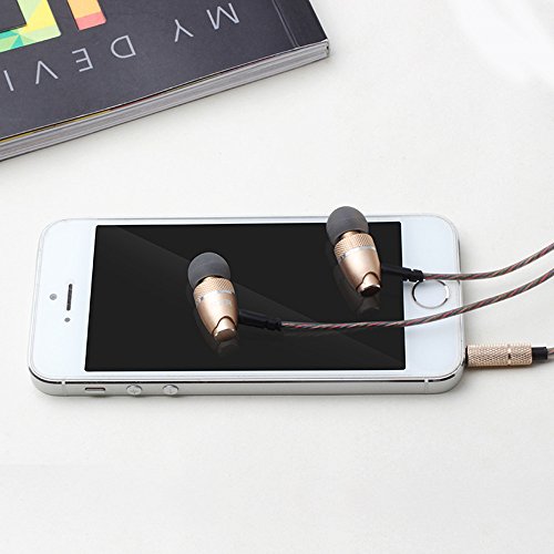 Headphones, In Ear Noise-isolating Headset Heavy Bass and Volume Control with 3.5 Jack Earphone (Gold)