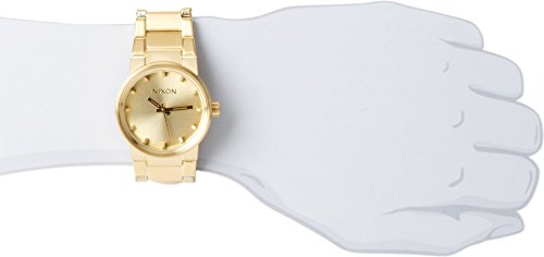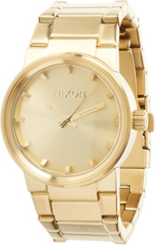 A borrowed-from-the-boys Nixon watch in weighty, brushed metal. Sleek markers detail the numberless dial. Hinged-snap clasp. Extra links included.