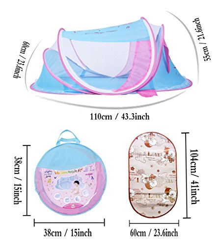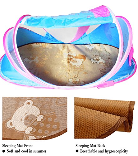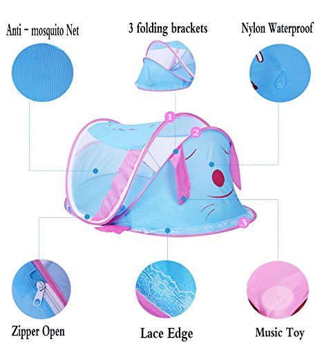 ►SUMMER DESIGE - This baby tent bed comes with a sleeping cooling pad and music toy,Never worry your babay will feel hot and uneasy. and shade keep your baby from the sunburn. Music toys help baby sleep better