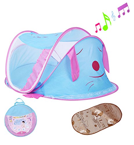 Sunnec Baby Travel Bed Portable Travel Crib, Folding Sleeping Mosquito Net Bed Infant Beach Tent with Baby Summer Soft Sleeping Mat Plays Music