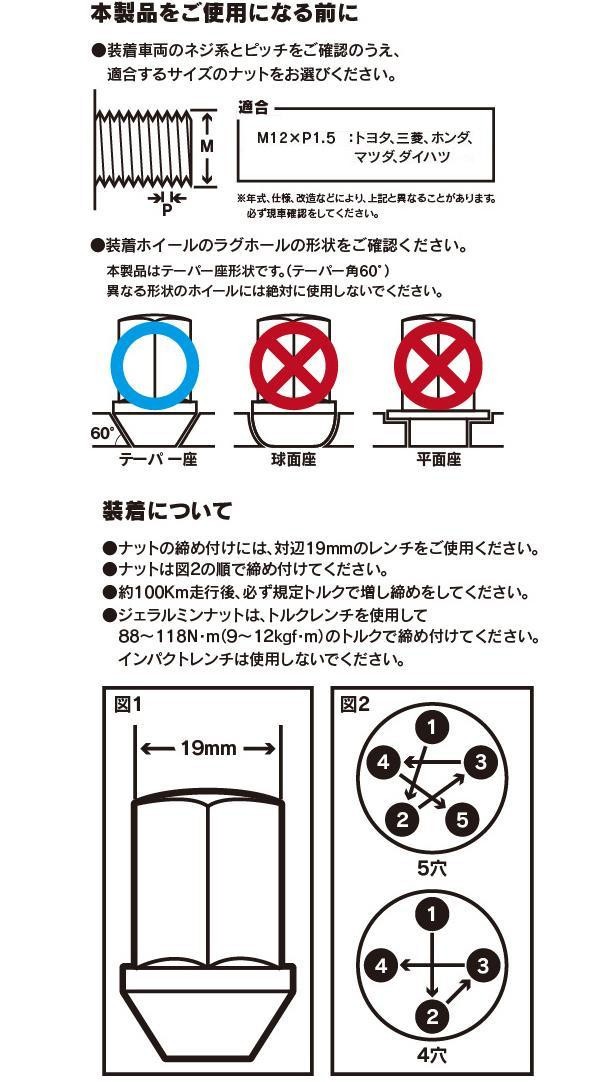 | セット内容 | ジュラルミンナット M12×P1.5 34mm×20本 19HEX/21HEXアダプター |