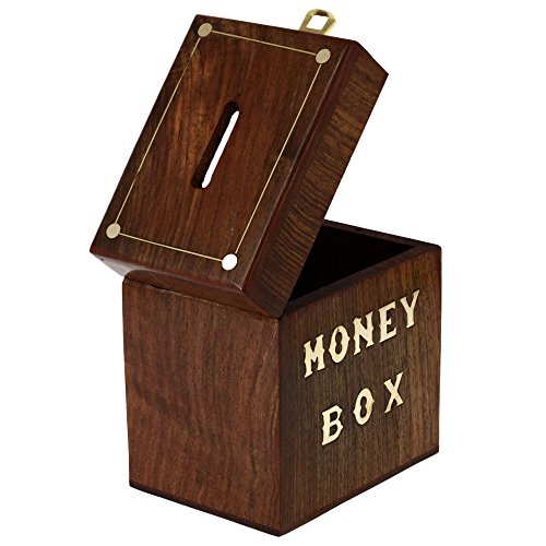 Handcrafted Wooden Money Box Safe Piggy Bank For Girls Boys Adults 3X4X4.25 Inch