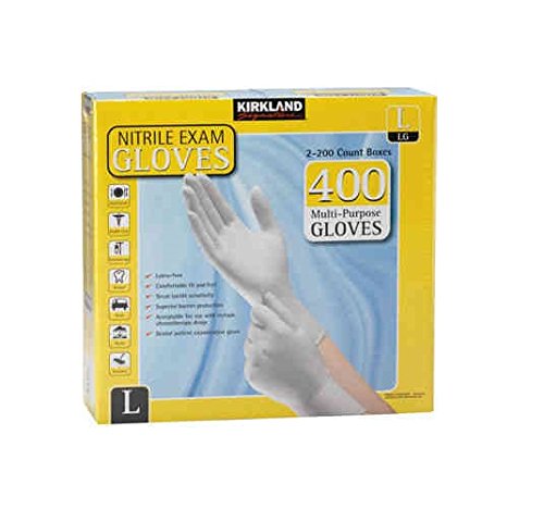 Studio : Kirkland Signature Publisher : Kirkland Signature Binding : Health and Beauty Product Description 2 x 200 Nitrile Exam Gloves Multi Purpose Kirkland Size Large. Two (2) boxes - 200 per box. 400 multi-purposes gloves total Size: Large. Latex-free. Powder-free. Comfortable fit and feel. Great tactile sensitivity. Superior barrier protection Fits either hand. Non-sterile. Textured fingertips. Single-use only. Acceptable for use with certain chemotherapy drugs. Dental patient examination glove. Great for food service, health care, chemotherapy, dental, auto, home, sanitary. 0