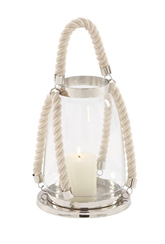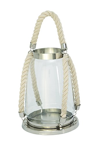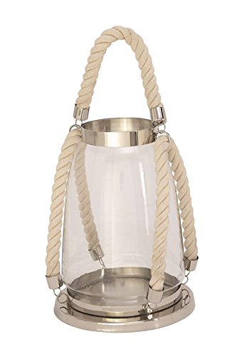 Studio : Deco 79 Publisher : Deco 79 Binding : Kitchen Product Description B>description: functional and for home decoration, this metal rope glass lantern is the best. Simple, classy and worthy this lantern would be best addition to your home. The case is simple glass jar shaped with small but open mouth. The top and base of this lantern is metal furnished hence it assure sturdiness. There is rope design from the sides that acts as loop. This lantern can be suspended to inside or outside your house. This lantern is has enough space inside hence you can light pillar, votive candles of any shape or color. This lantern is easy to clean and maintain. This lantern will lend Urbane touch to your home interior. Make it a part of your home decoration, party decoration or wedding decoration. beautify any boring area with the help of this decor. This simply classy lantern will suit any style home interior. Wish to light candles in this candle holder then go for it. 0