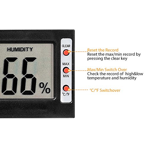 Easy to Operate There are totally 3 keys , then you can switch the unit(°C/°F) easily, or check the record of max & min temperatures & relative humidity and also reset the value by the "Clear" key
