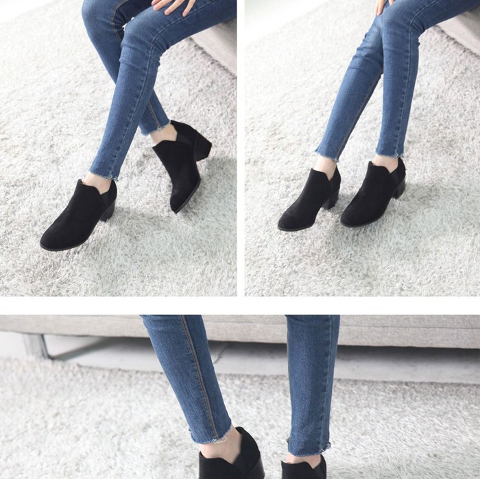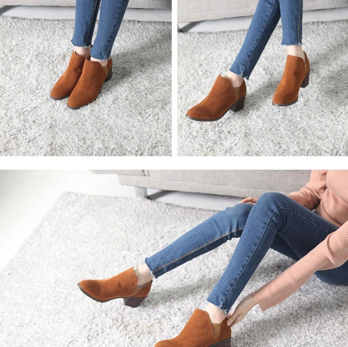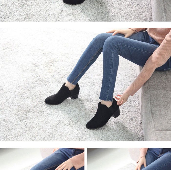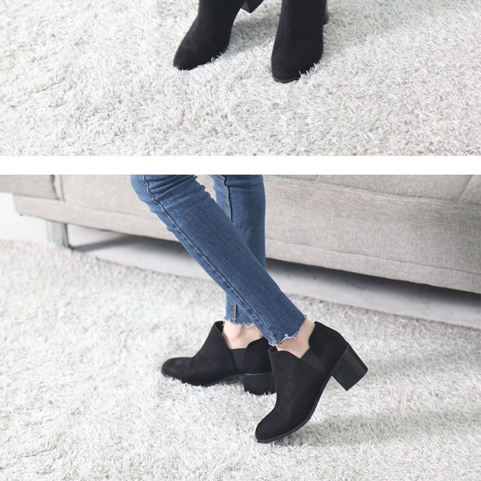 商品名:ショートブーツ レディース チャンキーヒール 太ヒール スエード調 2017 秋冬 ファッション 靴 婦人靴