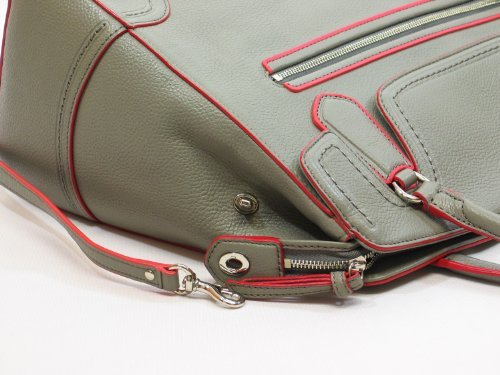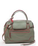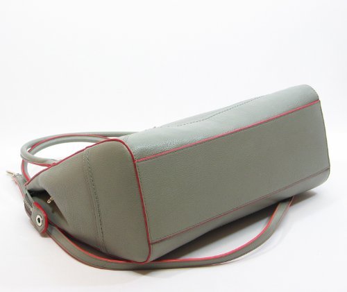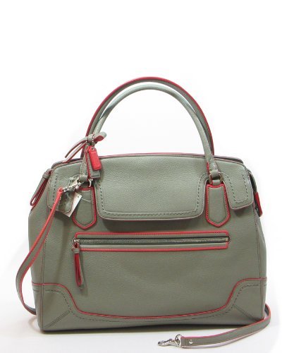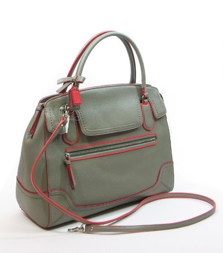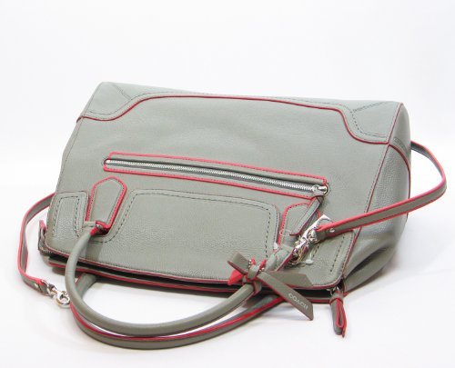 COACH POPPY LARGE FLAP SATCHEL IN EDGESTAIN LEATHER IN GREY / CORAL 25058