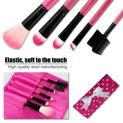 The Phileex 6-Pieces Brush Set with Pouch (Set of 5 Brushes and 1 Pouch, Pink)is the ideal assortment of cosmetic brushes for beginners and for traveling.The set includes 5 key synthetic hair brushes that are soft and silky to the touch.Easy clean up with no smell, hand made with wood handles.For convenient storage and portability, the brushes come with a handy organizer pouch. Product Included: 1 x Powder Brush