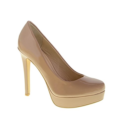 Stand tall in the Wow patent platform pump featuring a 5" stiletto heel and 1" platform. This is a wardrobe must-have. It pairs perfectly with everything from denim to dresses. By Chinese Laundry. Manmade patent 5" heel 1" platform Color - NUDEFeature
