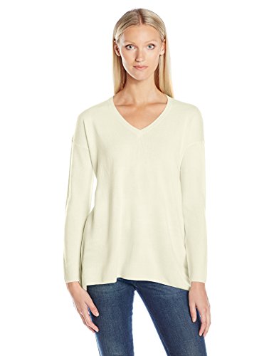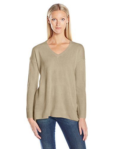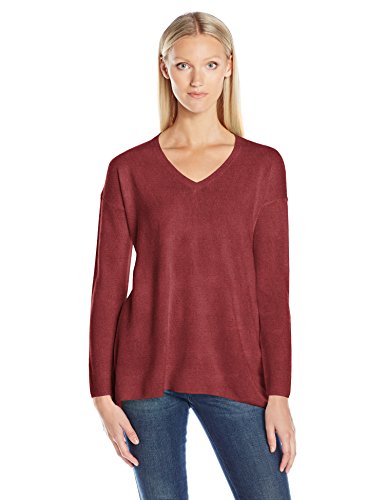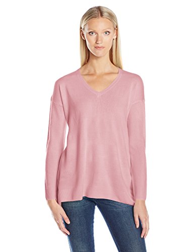 | Sag Harbor Women's Long Sleeve Sharkbite Hem V-Neck Pullover Cashmerlon Sweater |