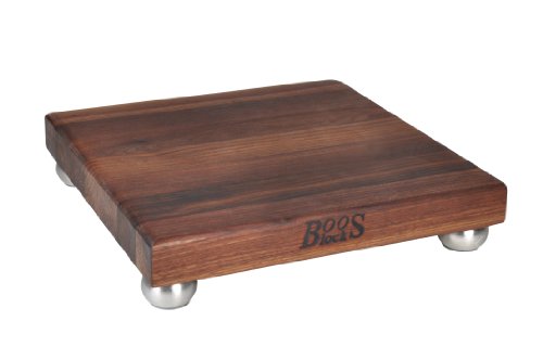 John Boos Walnut Edge Grain Cutting Board with Stainless Steel Feet, 12 Inches Square, 1.5 Inches Thick