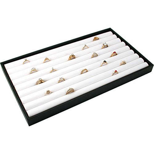-. Binding : Kitchen -. Brand : FindingKing -. Color : Black/White -. EAN : 0696734794010 -. Feature : This is a new black faux leather display tray / The trays are also stackable / Easily remove the tray from the showcase to allow customers to view your jewelry from the countertop / The case measures approximately 14 3/4" x 8 1/4" x 1" (37.4 cm x 20.9 cm x 25 mm) / This is a new white faux leather 8 row continuous slot display tray insert -. IsAutographed : 0 -. Model : KIT-10279 -. MPN : FC200232 -. PackageQuantity : 1 -. PartNumber : FC200232 -. ProductGroup : Jewelry -. ProductTypeName : FINEOTHER -. Title : White Ring Jewelry Display Case Box Black Tray Showcase -. UPC : 696734794010