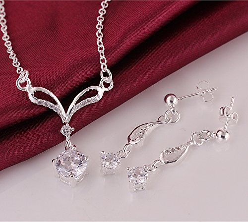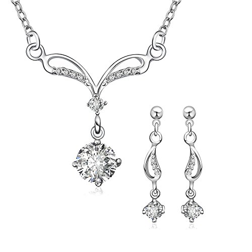 -. Title : "Love on the Mississippi River" Sparkling Zircon Crystal Necklace & Earrings Jewelry Set-Budding
