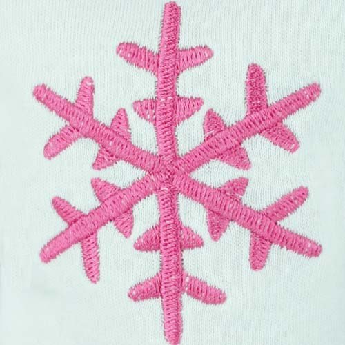 White Cotton Long Sleeve Tee Shirt with Pink Trim & Pink Embroidered Snowflake.