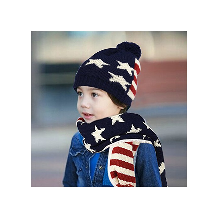 VBIGER 키즈 니트 모자 장갑 머플러 3점 세트 따스한 베이비 아카창 어린이용 방한 벙어리장갑 추동
