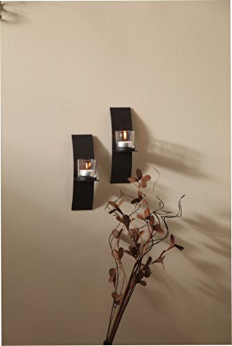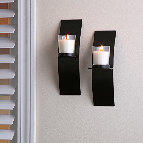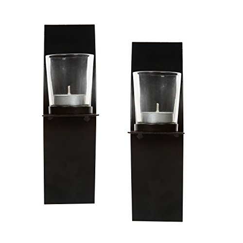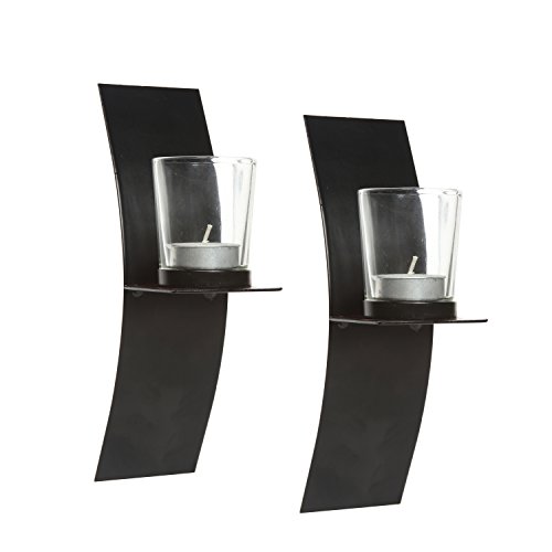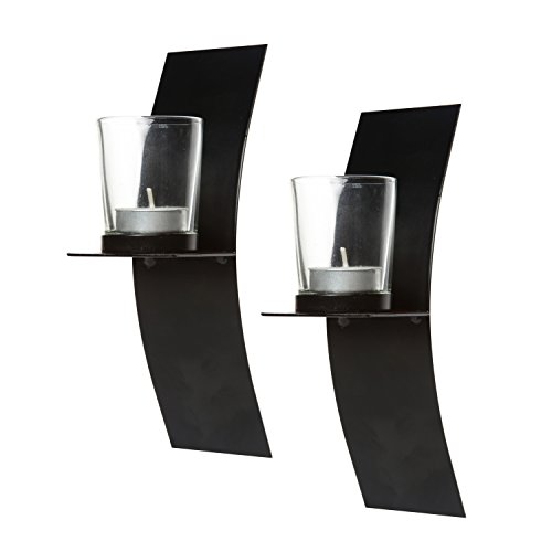 Hosley Set of 2, Modern Art Larger Wall Sconces with 2 Clear Glass Votive Candle holders-9" High & FREE Tea Lights. A Classic Design, Hand Made By Artisans. Complete Gift for Home, Wedding, Party