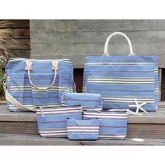 rockflowerpaper Rhodes Stripe Blue Canvas Carryall Tote Shoulder Bag
