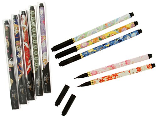 -. Feature : Pen that writes like a Japanese fude brush / Floral print washi paper covering (floral print may differ slightly from those pictured) / 6-7/8 inches long