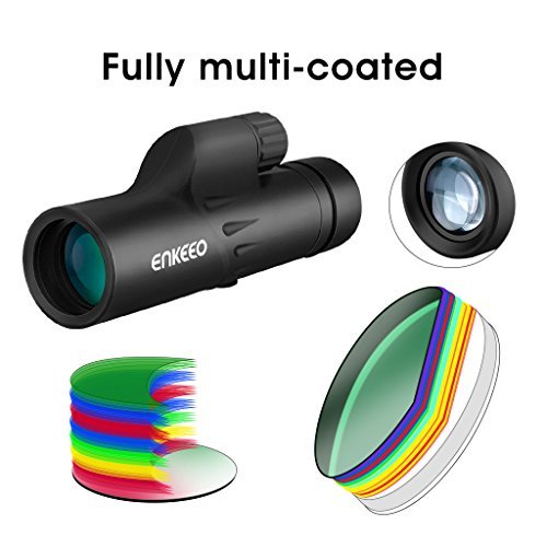 Enkeeo''s monocular features a rubble twist-up eyecup to protect your lens while not in use, and the neck strap is ideal to rest your hand after a long time viewing. You can store your monocular and the tripod in a carrying case for easy travel. All making, this unit is a must-have outdoor gear for you.