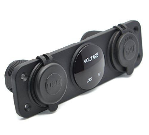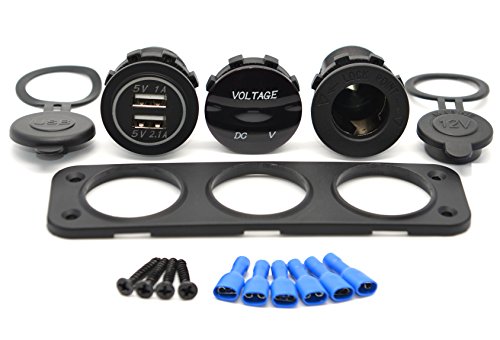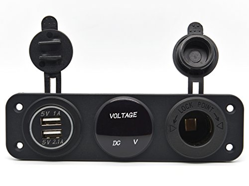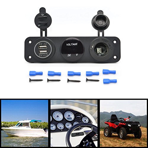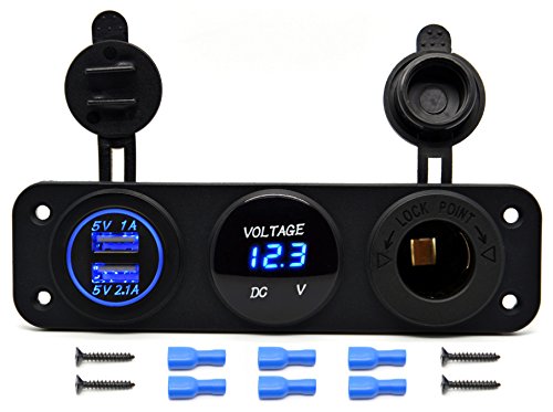Cllena Triple Function Dual USB Charger + LED Voltmeter + 12V Outlet Power Socket Panel Jack For Car Boat Marine Digital Devices Mobile Phone Tablet (Blue LED)
