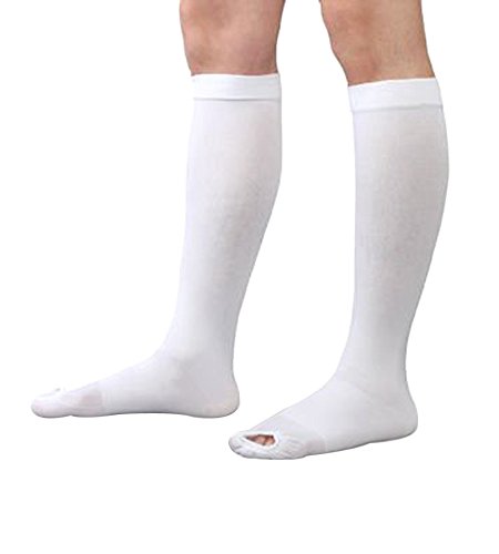 Ease Anti-Embolism Open-Toe Knee High Stockings - 18mmHg Mild Compression Support Nylons (White, XXL)