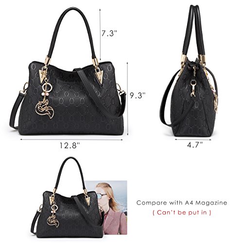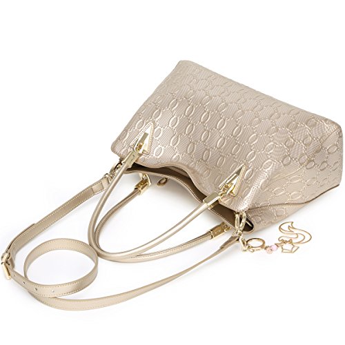 -. Feature : CHAIN EMBOSSING - This leather handbag features unique chain embossing and decorates with golden fox hardware pendant, elegant and chic. / PREMIUM LEATHER - Made of high quality cow split leather, enhancing softness and comfort. Polyester silk lining and premium hardware can stay in good condition even if used for a long time. / DIMENSIONS - Measures about 12.8" L x 4.7" W x 9.3" H, handle about 7.3" long. Weights about 1.7 pounds. Equipped with an adjustable and removable shoulder strap, which can drops 19.7" to 21.7". / INTERNAL STRUCTURE - Our leather purse comes with 2 large capacity main compartments, 1 zipper compartment and 1 side zipper pocket, meeting your daily needs. / IDEAL FOR ANY OCCASION - Perfect for dating, office, shopping, travel, party, banquet or special events. Also can be an ideal gift for yourself or for that someone special.