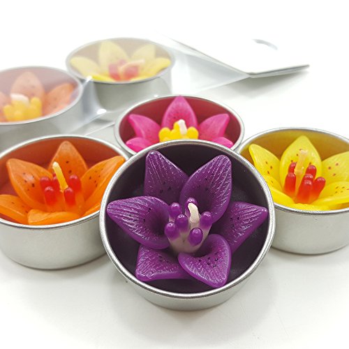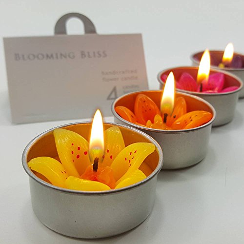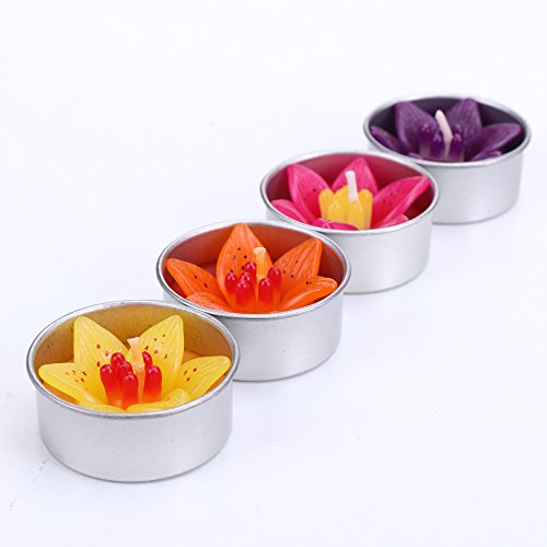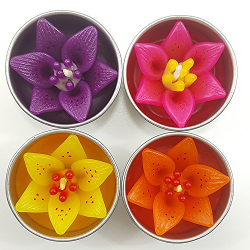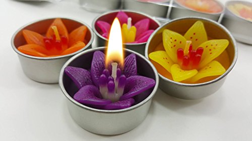 Tiger Lily Flower Scented candle filled Tealight Set of 4 (Yellow Orange Magenta Purple) Aromatherapy Relax