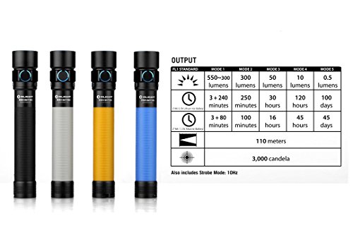 Powered by two AA batteries that offers five brightness levels with a maximum 550 lumens and a minimum .5 lumen mode