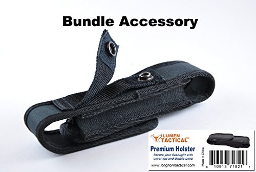 The Olight S2A comes with a Lanyard, User Manual, 2x 1.5V Lithium Iron Batteries (double the runtime of normal Alkaline AA batteries) as well as a versatile LumenTac cloth holster that can be looped through a belt or attach to a bag strap
