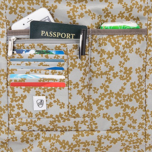 -. Feature : Water and dirt resistant, crinkle texture nylon Anti-Theft bag comes with a modern floral P.R.Int interior lining. / This bag showcases two front locking zippered pockets for valuable quick-grab items like your smart phone, and one large back zip pocket. / Roomy main compartment features smart organization with 4 RFID blocking card slots, 1 zippered and 1 slash RFID blocking passport pockets, pen loop, 1 large zipped wall pocket and slash pocket ideal for glasses. / Anti-Theft features prevent slash and grab thieves with hidden slash resistant stainless steel mesh body panels and stainless steel cable strap that is adjustable. / Other Anti-Theft features prevent pickpockets from entering your bag with locking compartments and snatch and grab thieves with an strap that can lock down to any stationary object.
