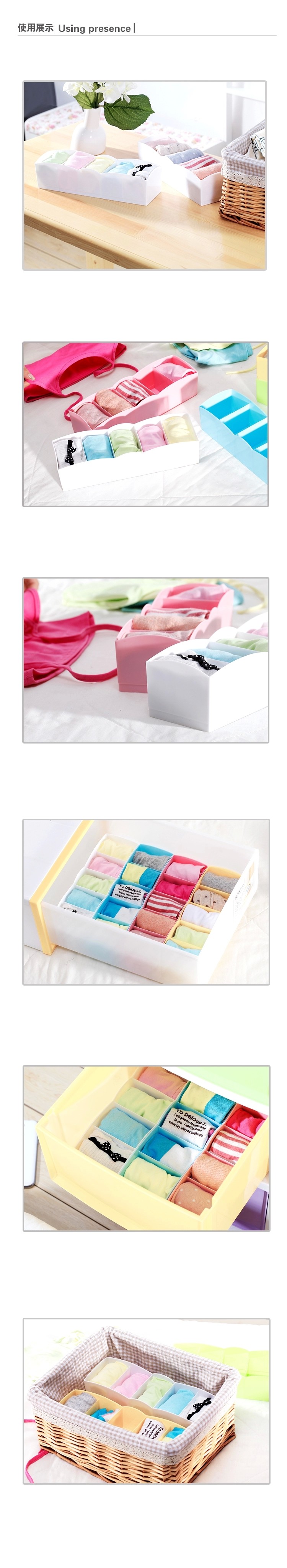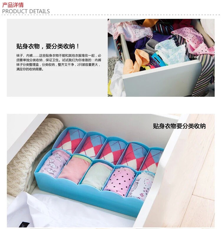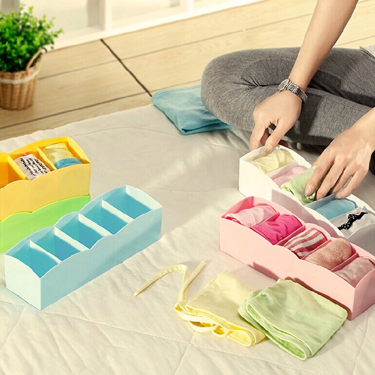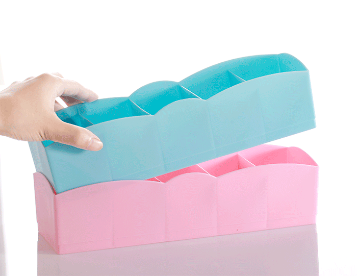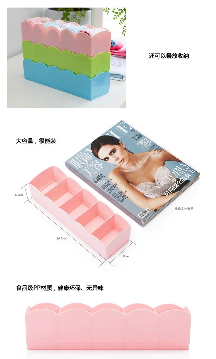 可叠加多功能抽屉内衣裤袜子收纳盒糖果色塑料收纳盒5件套