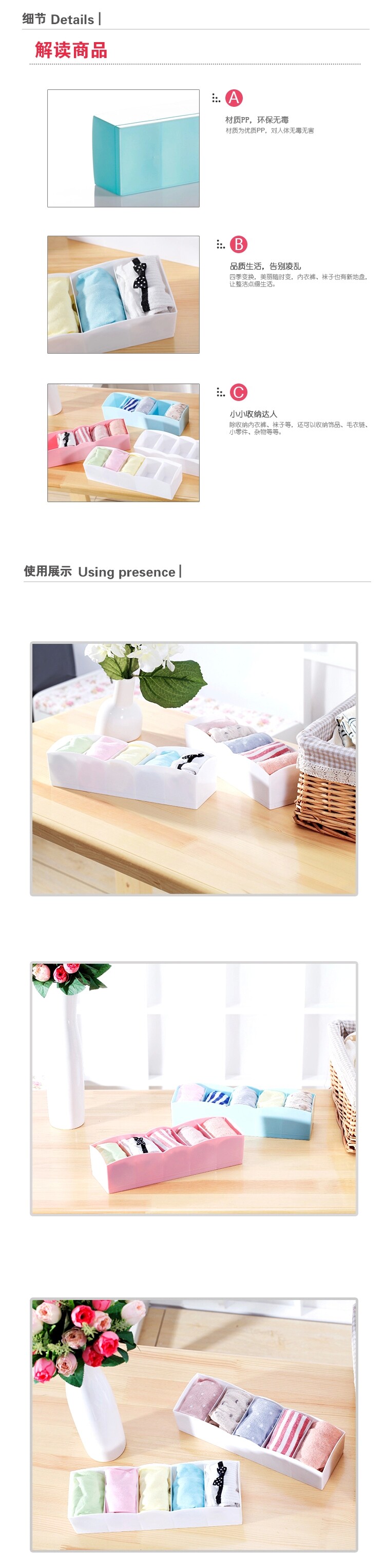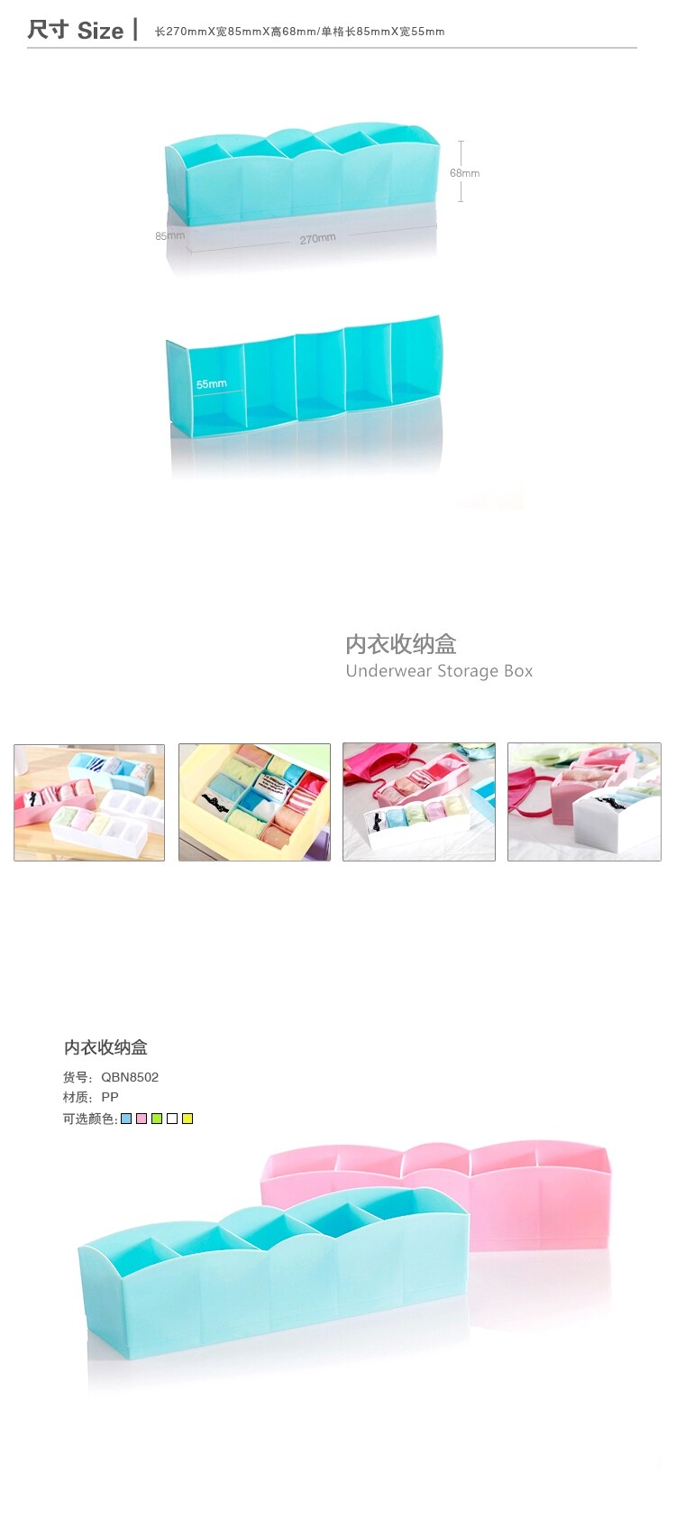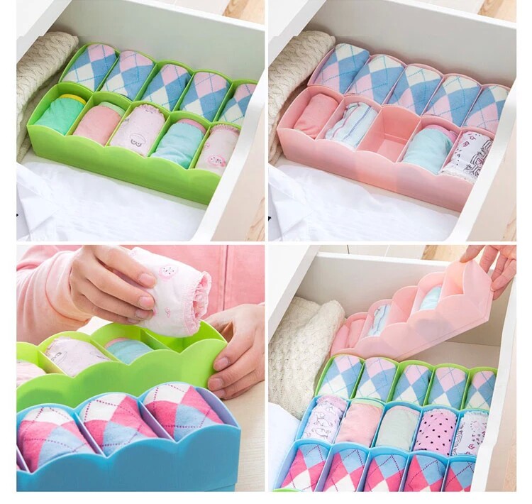 可叠加多功能抽屉内衣裤袜子收纳盒糖果色塑料收纳盒5件套