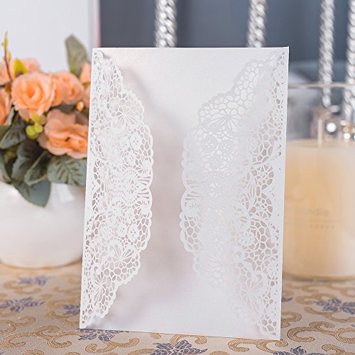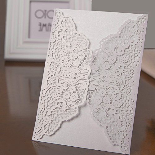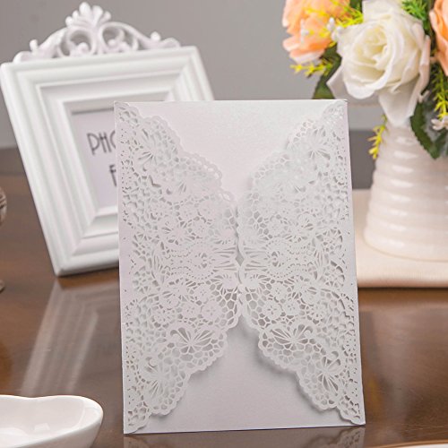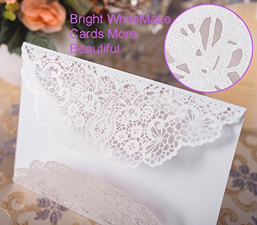- ❤ 20pcs High Quality Wedding Day Invitation Cards: Use Laser cut technics to make these delicate lace flower bridal shower invitations, beautiful pearlescent white cards and carved pattern, looks romantic and elegant.
