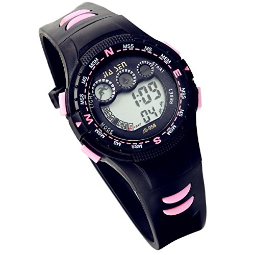 -. Feature : 100% brand new, two same watches in total, wholesale bulk price, come with two velvet gift bags / Length:8.9"(22.5cm), Case Diameter:1.2"(3.1cm), Thickness:0.5"(1.3cm), Band Width:0.6"(1.6cm) / Default Color: black bezel + pink button + black band, you can write email to change color after payment. / Multifunction Watch: Auto Date, Alarm, Water Resistant, LED display,Shock Resistant, Stop Watch,Back Light / Living waterproof design (Not suitable for swimming, diving, shower, etc.)