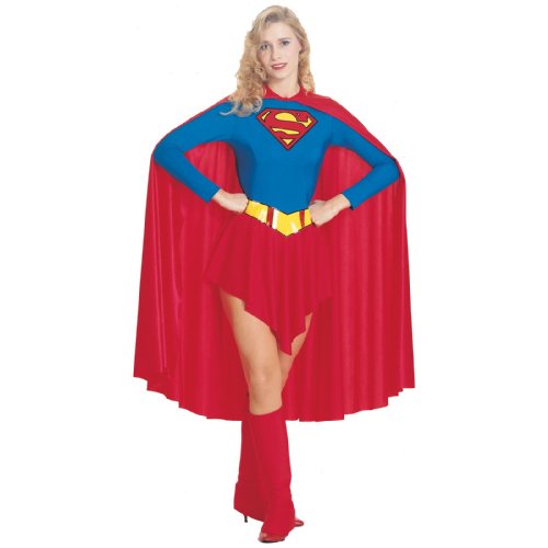 -. Binding : Apparel -. Brand : Rubie's -. ClothingSize : Small (6-10), Medium (10-12) and Large (14-16) -. Color : Red & Blue -. Department : womens -. Feature : Supergirl costume comes with leotard with skirt, belt, cape, and boot tops / Classic Superman shield embossed boldly at the chest / Costumes are sized differently than apparel, consult the Rubie's size chart and reviews before selecting your size / Officially licensed Supergirl costume, buy with confidence direct from Amazon, a trademark of DC Comics / Rubie's offers licensed DC Comics character costumes and accessories in sizes and styles for the entire family -. Genre : Superheroes/Villains -. IsAdultProduct : 0 -. Label : Rubies Costumes - Apparel -. Manufacturer : Rubies Costumes - Apparel -. MPN : RC15553 -. NumberOfItems : 1 -. PackageQuantity : 1 -. PartNumber : RC15553 -. ProductGroup : Apparel -. ProductTypeName : ADULT_COSTUME -. Publisher : Rubies Costumes - Apparel -. Size : Small -. Studio : Rubies Costumes - Apparel -. Title : DC Comics Deluxe Supergirl Costume, Red/Blue, Medium