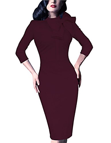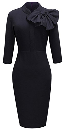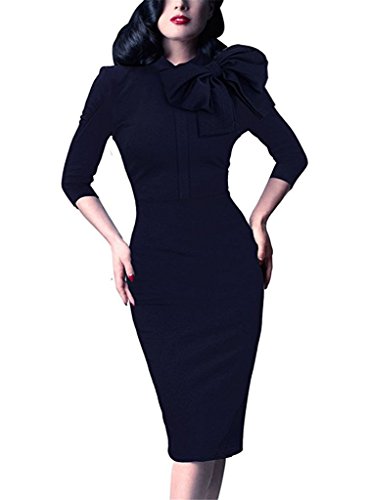 Women Latest Arrival Bow Decor Long Sleeve Slim Bodycorn Dress Business Pencil Dress.
