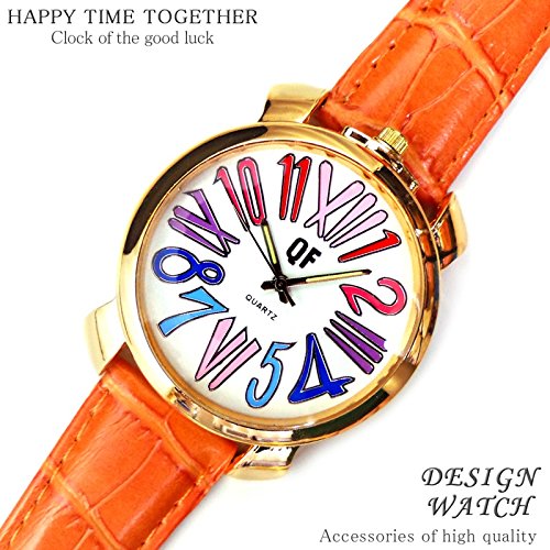 -. Title : 大人可愛いレディース腕時計 金縁 ビッグラウンドフェイス ベルトウォッチ 女性へのプレゼントにも 大きい 白 カラフル マルチカラー 文字盤[tvs308-lady]
