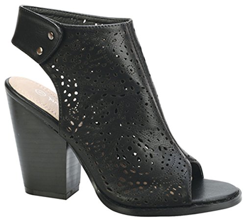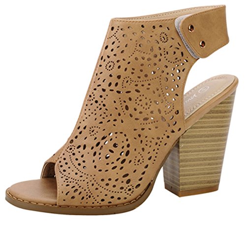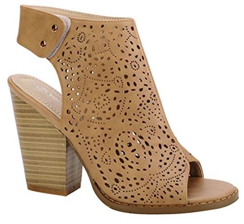 Binding : Apparel Product Description Nature Breeze Women's open toe bootie is a wardrobe staple! These vegan-friendly leatherette booties feature open toe front with snap button ankle closure. Laser-cut detailing throughout stacked faux wooden 4" heel. Imported. 0
