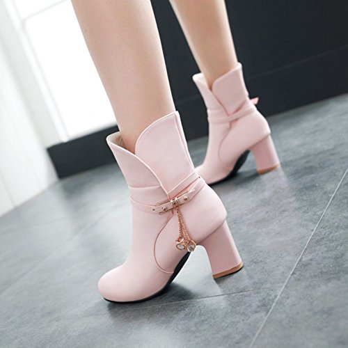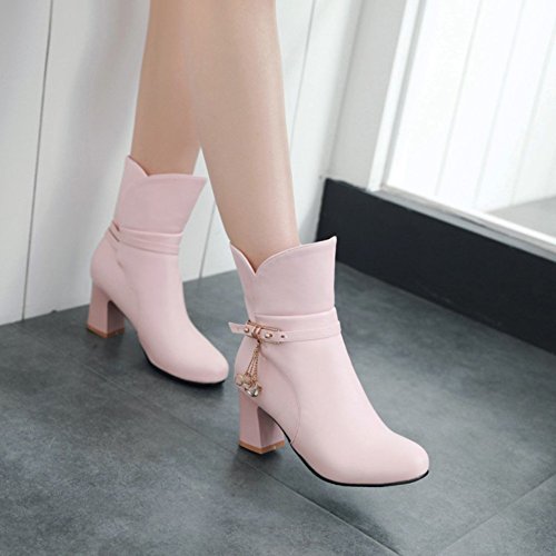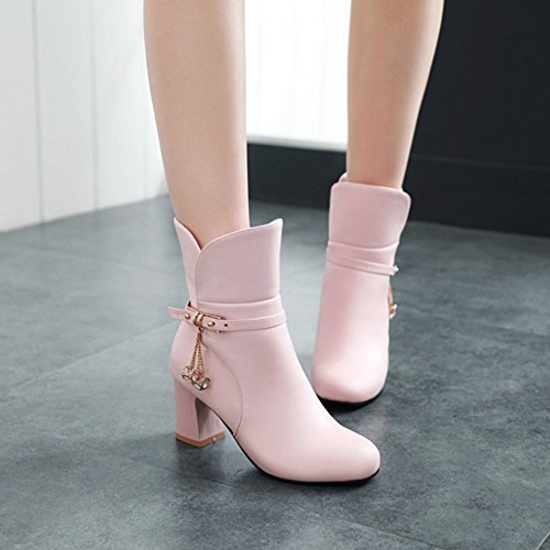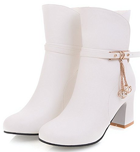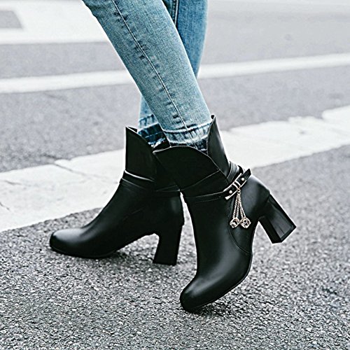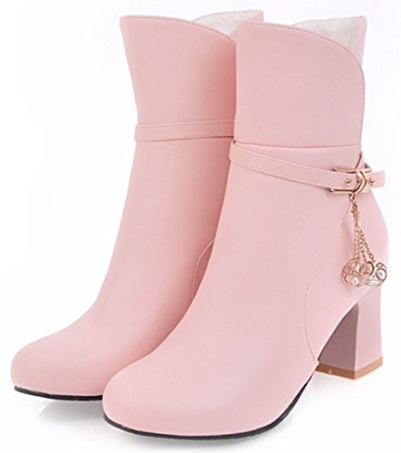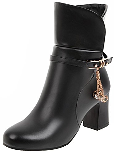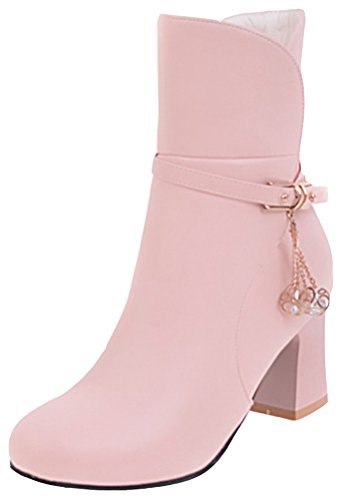 (Mofri)/Women's/Boots/DIRECT FROM USA/Mofri Women's Fashion Studded Buckle Strap Pendant Block Medium Ankle Booties Round Toe Pull On...