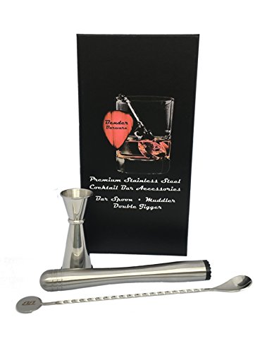 -. Brand : Bender Barware -. Color : Stainless Steel -. EAN : 0703062679985 -. Feature : This Premium Cocktail Bar Accessories Set is Crafted from Premium Stainless Steel - Tool Kit Includes a Double Jigger Muddler & Bar Spoon - Bar Tools Most Often Used When Mixing Your Favorite Drink. / Double Jigger - A Bartender's Go -To for Precision When Measursing Any Liquid. With Half a Shot on One End and a Full Shot on the Other End Your Drinks Will Be Consistent and Taste Great Every Time. / Muddler - This Tool is a Must Have for Anyone Who Enjoys the Flavor of Fruit and Herbs. Bender Barware's Muddler Measures 9" and has a Grooved Nylon Head on the End to Gently Release the Flavor and Essence Without Mashing the Ingredients. / Bar Spoon - This Bar Spoon is Perfect When You Need a Drink Stirred Not Shaken. At 131/2 " long this Cocktail Stirrer is Long Enough for the Tallest Collins Glass. You can Hold the Spoon at the End and Gently Move It Around the Perimeter or You Can Grip the Twisted Handle Between Your Thumb and Middle Finger For a Faster and More Forceful Stir. Use it for Small Measurements or to Even Make Layered Drinks. This Bar Spoon Does It All. -. Label : Bender Barware -. Manufacturer : Bender Barware -. Model : Bar-Tools SS -. PackageQuantity : 3 -. ProductGroup : Kitchen -. ProductTypeName : KITCHEN -. Publisher : Bender Barware -. Studio : Bender Barware -. Title : Jigger Muddler Bar Spoon Cocltail Bar Accessories Tool Kit Bartender Tools Home Bar Tools -. UPC : 703062679985