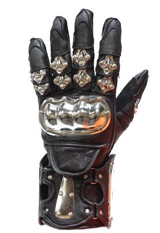 -. Feature : Top Quality Leather Gloves / Gloves have Metal at the Finger Tips for Extra Protection / Gloves have Double Layered Hard Knuckle Finger Protector / gloves have Double Velcro Strap Wrist Upper Forearm for tighter fit / Gloves have Protective metal Gauntlet Strap