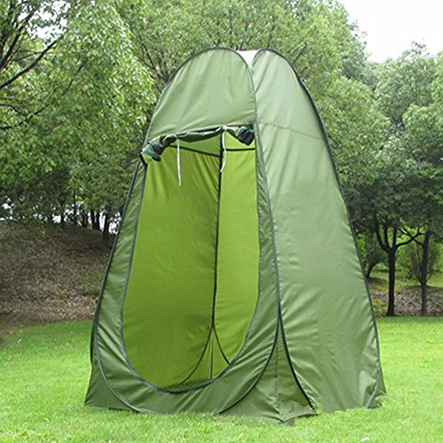 -. Feature : Comes with a small zippered window make the tent has good Ventilation. Four wind-proof straps on the corners, making it steadily fastened under any weather condition. / This Portable Pop-up tent is a great way to make a P.R.Ivate shelter for toilet, changing clothes or just camping. It's Ideal for use in public places such as park, pool, beach, campsite, forest, mountain areas or national parks. It has a covered roof for extra P.R.Ivacy to dress up. / The zipper door is easy for entry or exit. It is supported by flexible steel frame that are sewn into the fabric. Just taking the carrying bag around, and unfold the tent. / Material: polyester + steel. Color: Green. / Package Included: 1x Pop-up Tent. 1x Carrying bag. 4x Metal mounting stakes.